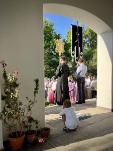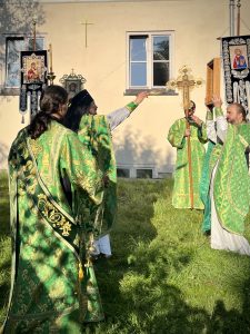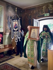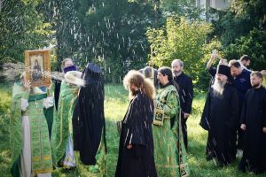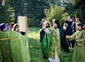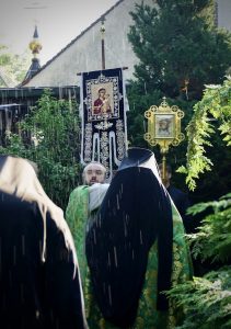 Nach der Liturgie folgte traditionsgemäß die Kreuzprozession um das Kloster und ein Moleben. Anschließend wurden die Geistlichen und alle Gäste zu einer bescheidenen festlichen Mahlzeit im Hof des Klosters eingeladen.
