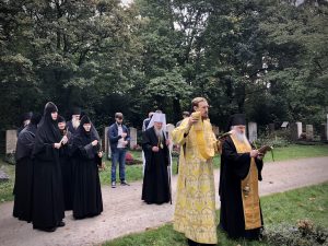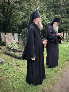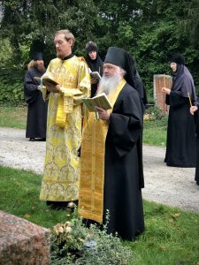 Панихиду служили насельник нашего монастыря иеромонах Анатолий (Трегубенков) в сослужении новорукоположенного диакона Артемия Розенхофа из Дармштадта. Хор составили сестры монастыря святой преподобномученицы Елисаветы, что в Бухендорфе, под руководством настоятельницы монастыря, игуменьи Марии (Сидиропуло). Матушка Мария с сестрами тоже хорошо знали отца Евфимия.