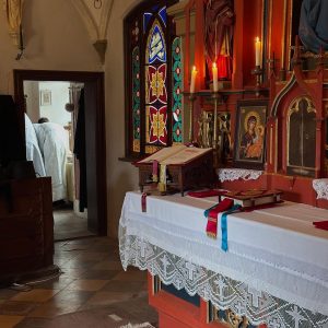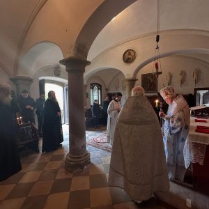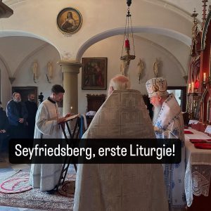 В четверг, 24-ого апреля 2025 (н. ст.) на новом месте нашего монастыря, в замке Зайфридсберг, произошло знаменательное событие: нашим игуменом, митрополитом Марком, в сослужении иеромонаха Анатолия (Трегубенкова) и недавно рукоположеного диакона Артемия Климашевского, в присутствии братии и некоторых верующих была отслужена первая божественная Литургия.